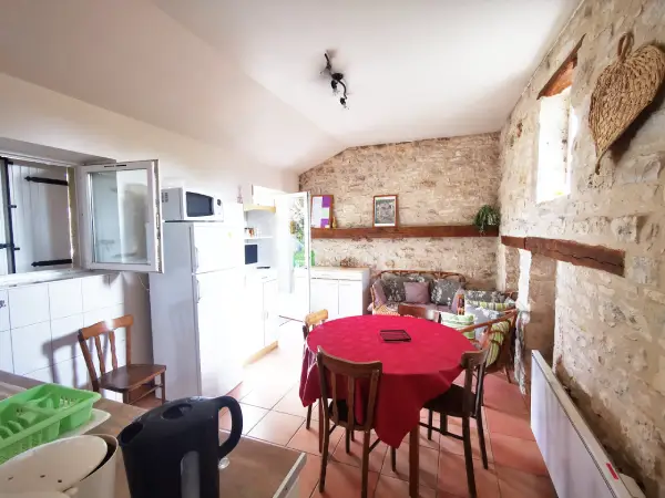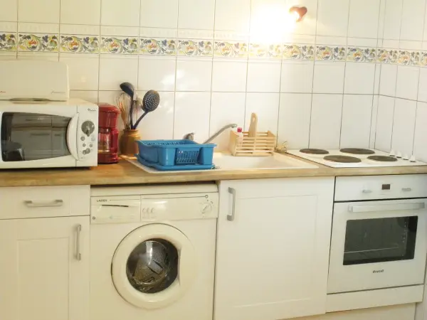 Le gite est lumineux , une cuisine parfaitement bien équipée avec four , frigo -congélateur , plaque vitro céramique 4 feux, et également un lave -linge. TV + réseau 4G+