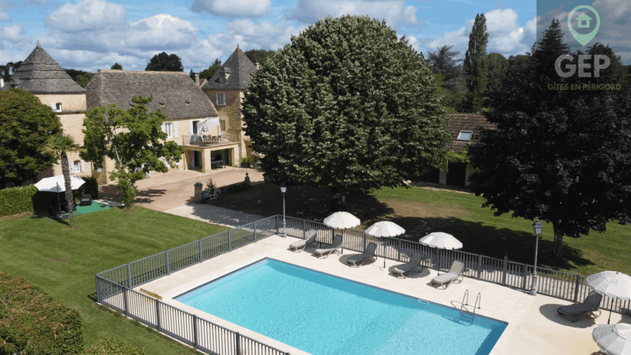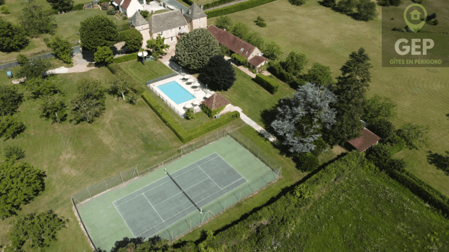 Situé en plein cœur du Périgord Noir, ce magnifique domaine vous accueillera dans un cadre chaleureux et confortable. Cette magnifique bâtisse typiquement Périgourdine, a été entièrement rénovée, conservant une toiture en Lauzes identique à celles des nombreux châteaux de la région. Composé de plusieurs logements et d’une grande pièce à vivre, familles ou amis, pourront profiter du vaste jardin, de la piscine chauffée 12x6m, du tennis. Tous les logements sont équipés de Wifi et TV. Idéalement situé en rez-de jardin, 2/4 personnes pourront séjourner dans ce logement bénéficiant d’un accès PMR (Personne à Mobilité Réduite). Le logement bénéficie d’une Superficie totale : 40 m² Une chambre avec lit kingsize 180x200cm (ou 2 lits jumeaux de 90×200) ouvrant sur terrasse, coffre-fort, sèche-cheveux, TV, Wifi, air conditionné. 1 salle de bains (douche, lavabo,wc) Terrasse aménagée avec table, chaises, parasol, voile d’ombrage L’espace aquatique (piscine 12x6m chauffée), le terrain de tennis et les autres installations sont en libre accès, pour de vraies vacances, a votre rythme. Bien évidemment, plancha, bains de soleil, salons de jardin font partis de l’équipement fourni pour des vacances inoubliables. L’accueil et la remise des clefs se feront sur place. Prendre contact avec Alexandre afin de planifier votre accueil. Le logement est mis à disposition parfaitement propre et rangé. Il conviendra de le libérer rangé, propre, poubelles évacués. Une option ménage de fin de séjour est possible (demander tarif et disponibilité). Draps et serviettes de toilettes sont fournis. Photos logement détente accès PMR avec terrasse:Détails