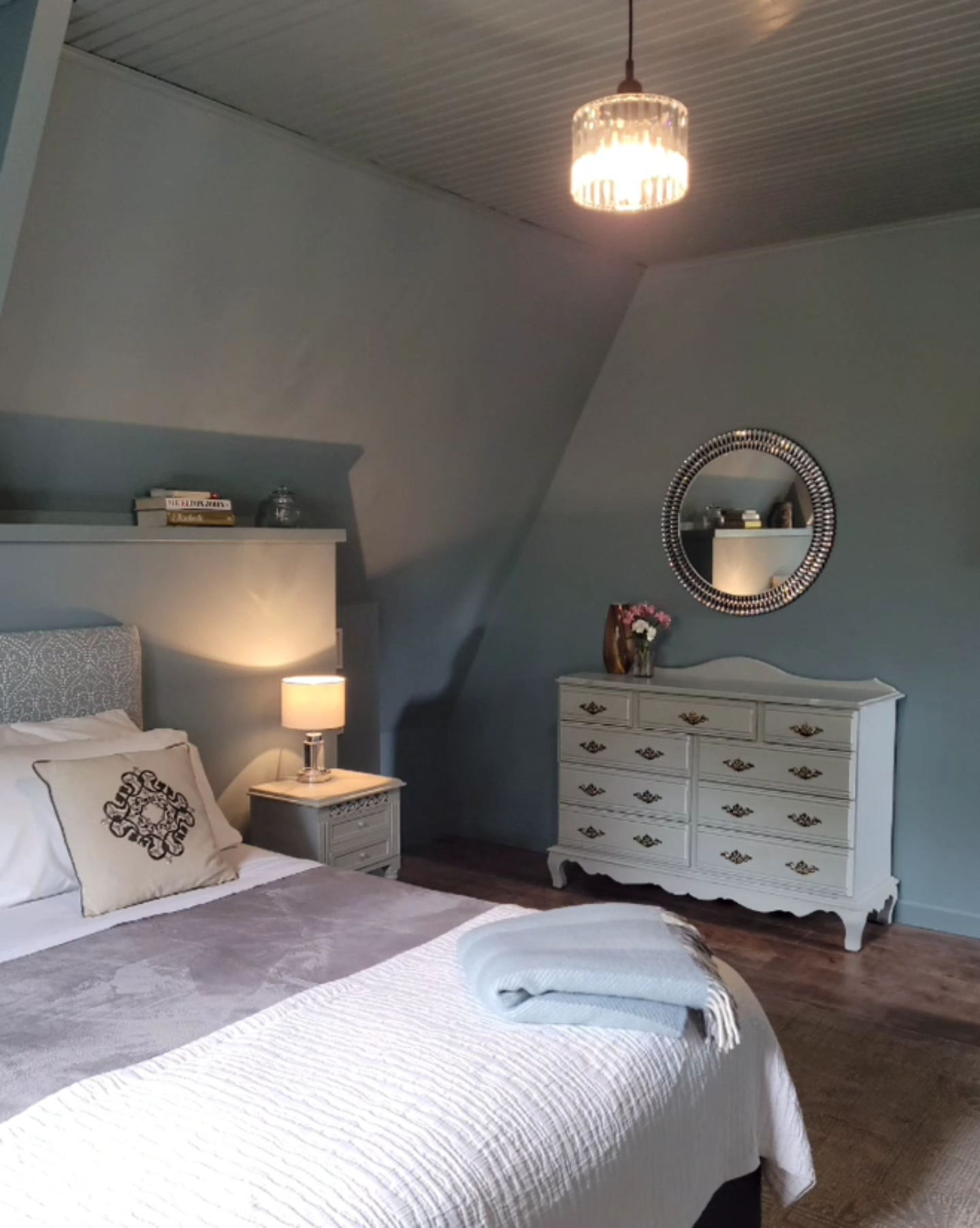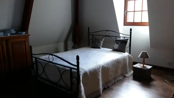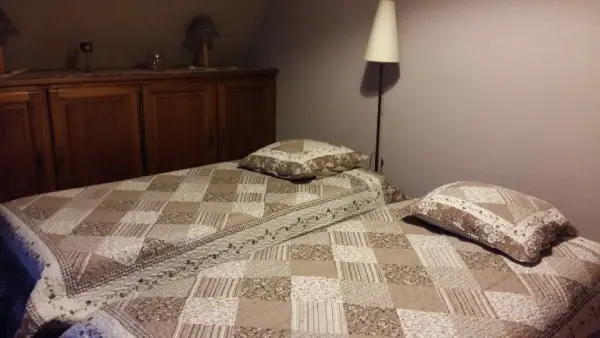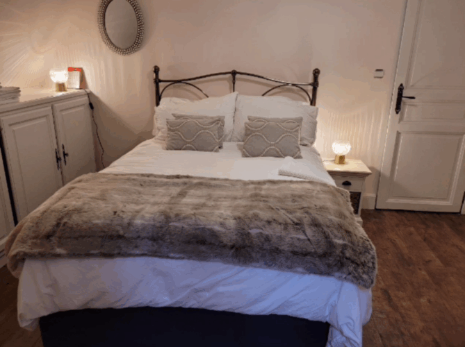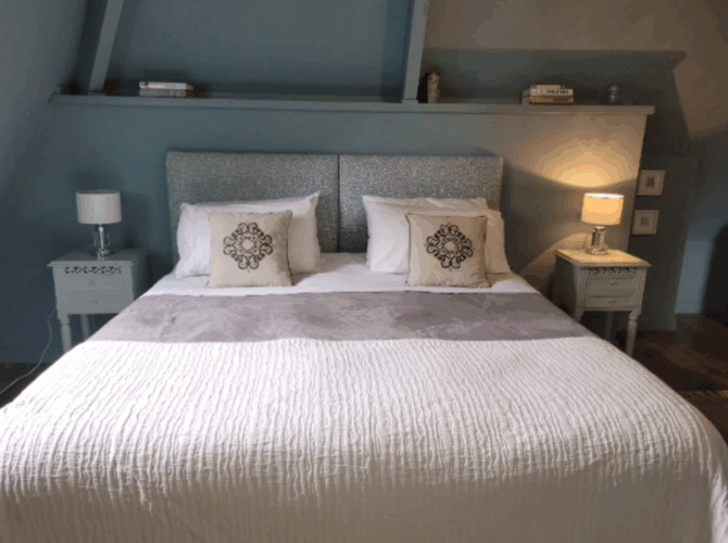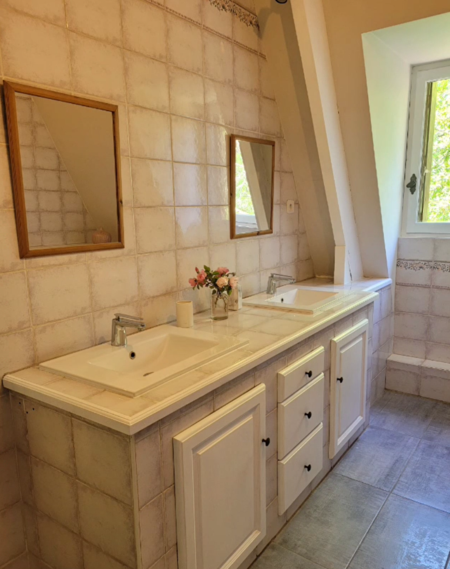 en haut de l’escalier, se trouve la mezzanine qui accueille un espace billard !! 2 chambres (l’une équipée d’un lit 140×190 cm, l’autre de 2 lits 90×190) et 1 salle d’eau complètent ce palier, avec des espaces détentes, lecture et un bureau. TV et Wifi.