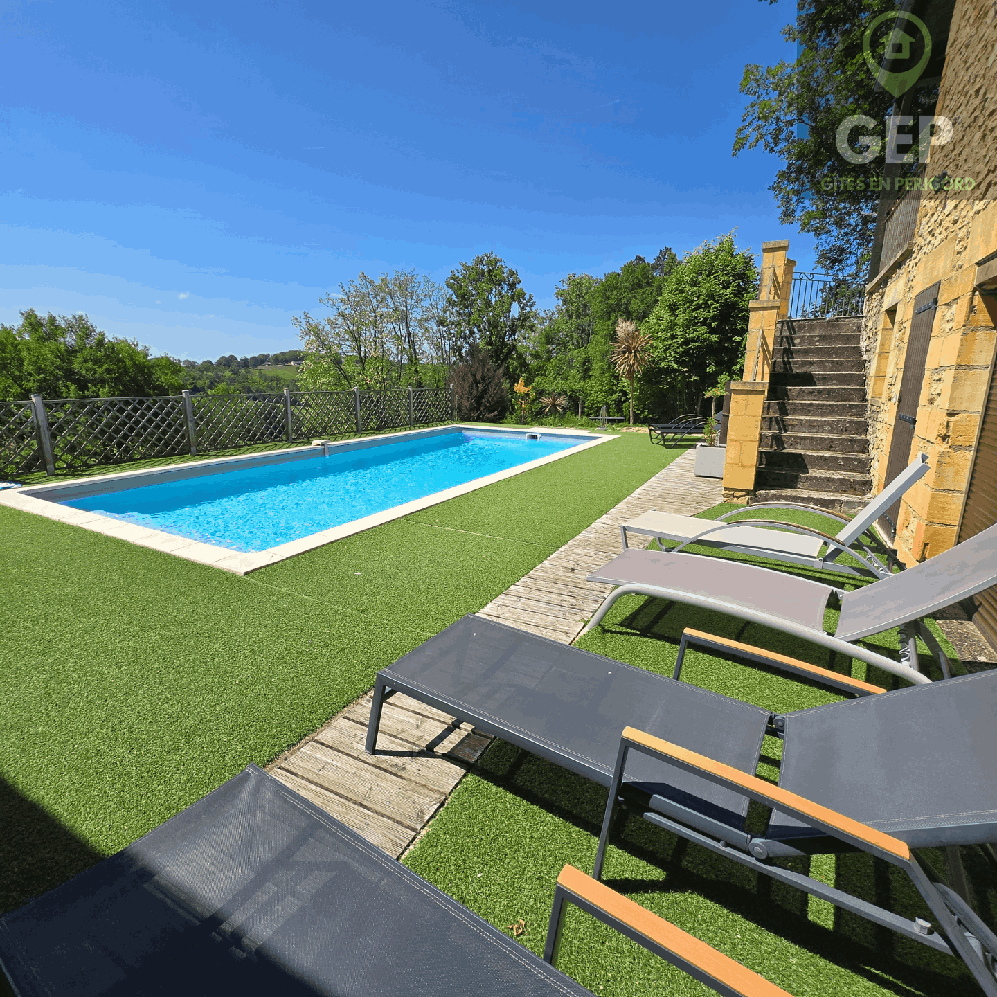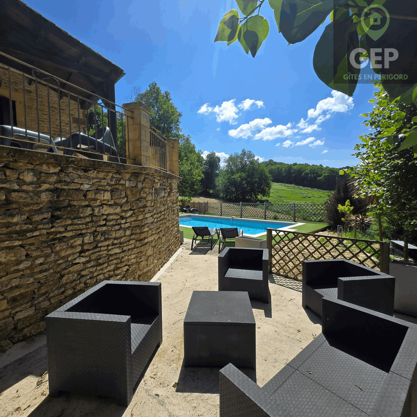 A la visite du Périgord Noir ! Vous recherchez pour un séjour au calme, un logement confortable avec une belle vue, et proche des sites touristiques les plus en vue, Ne cherchez plus !! Cette maison de 170 m² avec jardin de 10 000m², au style incomparable, est disponible à la location toute l’année. Système de chauffage au sol performant. La cuisine est parfaitement équipée, avec réfrigérateur américain, congélateur, plaques induction, plaques gaz, four et micro-ondes, lave vaisselle. 3 cafetières sont à disposition: Nespresso, Senseo, et traditionnelle à filtre. Accès à la buanderie équipée d’un lave linge, étendoir, aspirateur, fer et planche à repasser. Un vaste séjour lumineux ( avec Babyfoot) permettra de manger en famille et d’admirer la campagne avoisinante. La cheminée pourra être utilisée pour rendre les soirées TV plus chaleureuses dans le salon.
